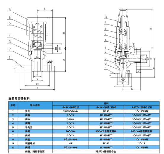 彈簧微啟式高壓安全閥(A41H-160/A41Y-320)適用于工作溫度≤200℃的空氣、氮氫混合氣、水等介質的設備和管路上。A41Y-160P/A41Y-320P型彈簧微啟式安全閥適于工作溫度≤200℃有腐蝕性的氣體或液體介質的設備和管路上,作為超壓保護裝置。當設備和管路內壓力超過允許值時,閥門自動開啟,繼而全量排放,當壓力降降至規定值時,閥門自動關閉,保證設備和管路的安全運行。