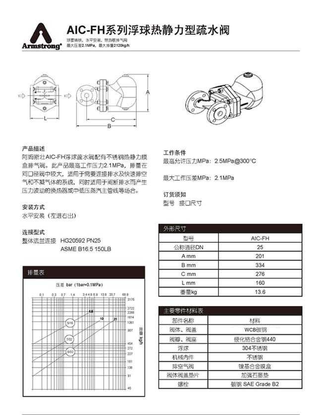 阿姆斯壯AIC-FH系列浮球熱靜力型疏水閥