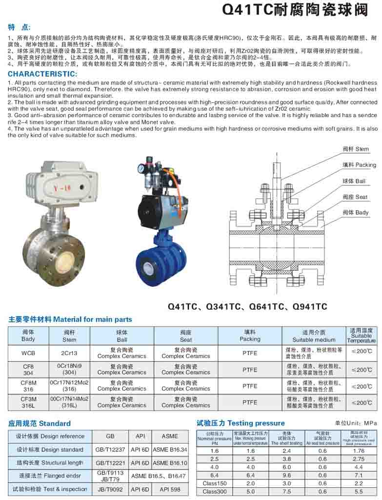 ,其與介質(zhì)接觸部分全部采用耐腐蝕性能極強(qiáng)的結(jié)構(gòu)陶瓷制作,具有金屬閥門無法比擬的耐腐蝕性能,是強(qiáng)腐蝕場合下鈦閥、蒙乃爾閥的理想替代產(chǎn)品,同時(shí)具有極強(qiáng)的耐磨損、耐沖蝕性能,使用壽命是鈦閥的2~4倍,特別適合于電廠脫硫系統(tǒng)、化肥廠輸送漿液以及焦化、造紙等強(qiáng)腐蝕介質(zhì)的場合。