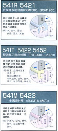 ※1:制造尺寸范圍是:80mm-600mm ※2:50mm,65mm時只有聚四氟乙烯,SCS14 ※3:只有5423進(jìn)行電鍍加工 ※4:關(guān)于高分子 聚乙烯密封請與我方聯(lián)系 ※5:使用5423超這高溫規(guī)格230℃時請與我方聯(lián)系 |