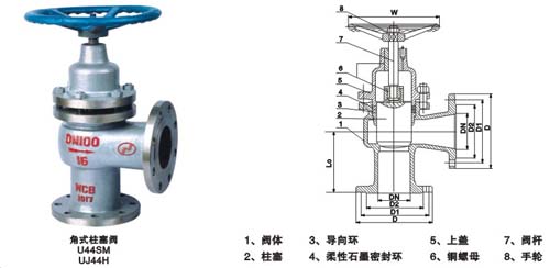 U44SM角式柱塞閥主要連接、結(jié)構(gòu)尺寸: