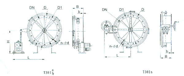 手動 ≤DN400或400×400 時為手柄傳動, ≥DN400或400×400 時為蝸輪蝸桿傳動 |